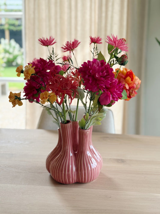 Een roze vaas is dé perfecte gekleurde vaas voor iedereen die houdt van kleurrijke huisdecoratie. Bij StyleByClariss vind je een met liefde samengestelde collectie roze vazen die zorgen voor een zachte en vrolijke uitstraling in jouw huis. Of je nu kiest voor een subtiele pastel roze tint of een opvallende fuchsiakleur, een roze vaas brengt altijd een vleugje roze en stijl in jouw huis. Vul deze vaas met bloemen en je hebt meteen een eyecatcher op tafel staan.
